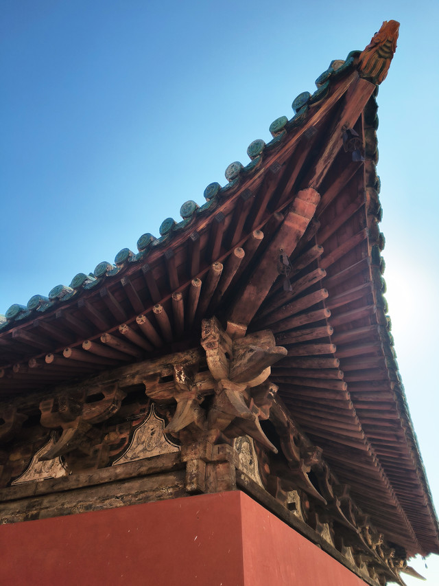 应县木塔建于辽清宁二年(1056),塔高67.31米,底层直径30.27米,呈平面八角形。第一层立面重檐,以上各层均为单檐,共五层六檐,各层间夹设暗层,实为九层。木塔采用全木结构,耗材红松木料3000立方米,重达2600多吨。塔内各层均塑有佛像,其中一层为释迦牟尼,高11米。木塔以其精妙的榫卯结构闻名,没有使用一根钉子却能抵御千年的风雨侵蚀,木塔的设计充分展现了中国古代建筑的智慧和技术水平,是建筑结构与使用功能设计合理的典范,被誉为“世界上独一无二的伟大杰作”,与巴黎埃菲尔铁塔和比萨斜塔并称为世界三大奇塔。(门票50元,60岁免票)