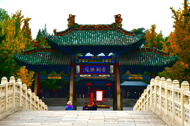 晋祠位于太原市西南25 公里的晋源区晋祠镇悬翁山下,是后人为纪念唐叔虞所建的祠宇。晋祠的始建年代不详,最早的记载见于北魏郦道元所著《水经注》一书,北齐天保年间(公元550-559年)曾大兴土木扩建晋祠。此后历代不同时期,出于不同的需要,相继在晋祠维修增建,集儒、释、道于一统,形成了一处规模宏大的建筑群。祠内琼楼玉宇,风景如画,国宝荟萃,其中的圣母殿、鱼沼飞梁、献殿等堪称三大古建国宝;齐槐周柏、难老泉、宋塑侍女像并称为"晋祠三绝"。晋祠三匾包括水镜台、对越和难老。这三块匾额分别是清代乾隆翰林、书法家杨二酉,以及明末清初书法家傅山等人所题,具有极高的书法艺术价值。(免票80元,60岁以上免门票)