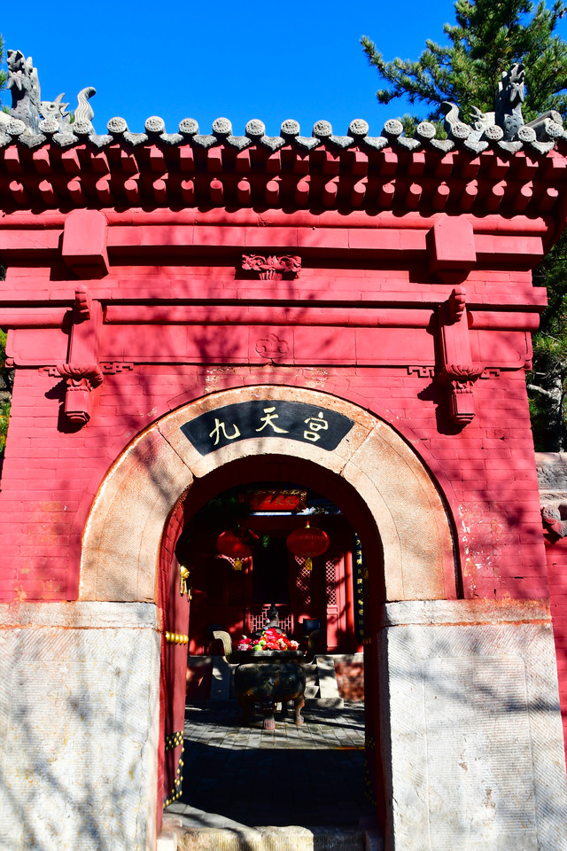 九天宫是恒山上的道观之一,宫院呈正方形,正南开门。正面大殿内塑有九天玄女圣母的神像,殿两旁有耳殿,东西两厢建有配殿和钟鼓楼,结构严谨,布局对称。宫西有翠雪亭遗址,翠雪亭曾是历代名人留连之处。特别是在明代,九天宫与翠雪亭更是文人墨客吟咏的天然灵境。九天宫的建筑年代已无从查考,但从志书的记载来看,明代以前就有了此庙。明神宗敕谕恒山北岳住持道士的亲笔圣旨也存放在九天宫内。