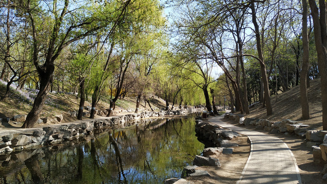 北京圆明园中的福海:初春三月的下午