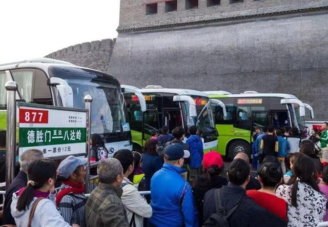 1.选择公交877路到八达岭长城景区,坐地铁积水潭出,步行走10多分钟到德胜门公交站乘车,人比较多,等候时间较久,另外一定要注意877路公交车的时间,从长城下来的时候,尽量早点下来,不然没有回去的公交了,坐黑车回市区会花费很大一笔钱。