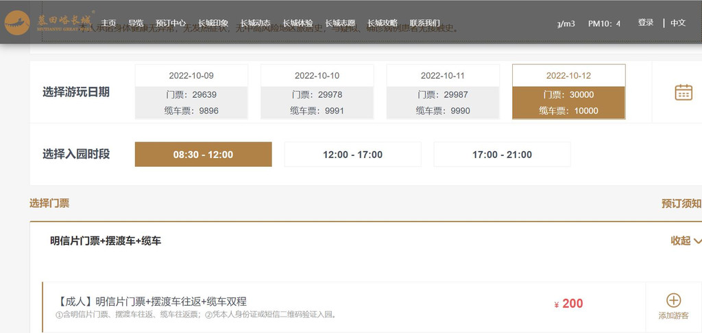 门票预约平台:慕田峪长城官网