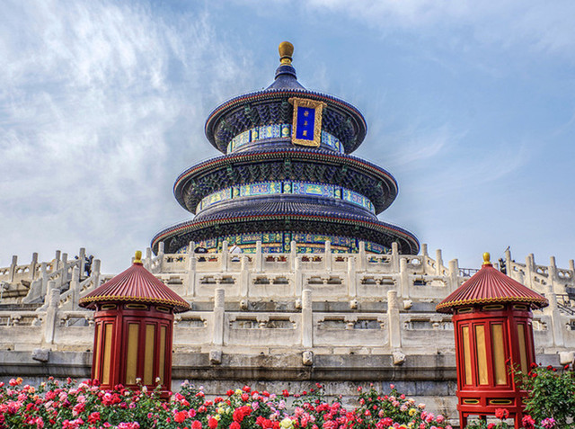 天坛是明清两代皇帝祭祀皇天,祈求五谷丰登的地方,也是世界文化遗产和5A级景区,天坛是圜丘祈谷两坛的总称,有两重坛墙从而形成内外坛,坛墙南方北圆,象征了天圆地方,继续向北过了祈年门后是天坛的核心景观祈年殿,是由一个三层的白玉石围栏基座所撑起,与天地浑然一体,藻井更为恢弘大气,而让人更为震撼的是多个红色柱子。在天坛还有一处特色景观叫做回音壁,环形的围墙加上较小的空间,使得声音可以反射回来,值得游客去体验一番。