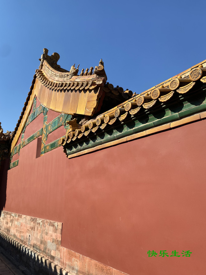 生活区里宫墙上的装饰比外朝宫墙上的线条柔和多了。