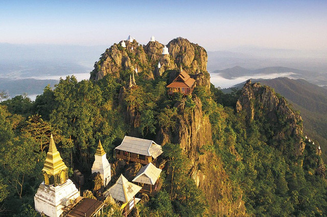 这座寺庙坐落于南邦府寨封县的一座山脊顶部,花了整整10年的时间才建成,建造时间之久,是因为防止这座山因公路建设而被炸毁。