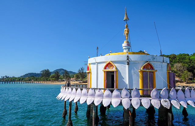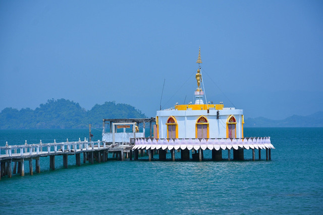 寺庙又名“Utakkukkhephasima”,意为佛祖曾提到的水中佛殿。这座伫立在海水中的白色佛殿既庄严而美丽,好似坐落在莲花座之上,特别是在四面湛蓝大海衬托之下,美出意境。来到Ko Phayam岛上观光的游客都会顺道来Wat Ko Phayam寺参拜,为自己求得一份好运。