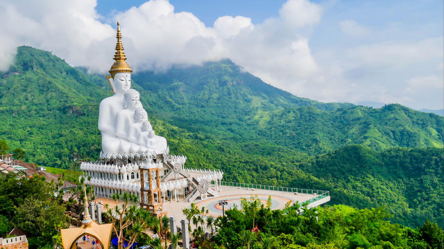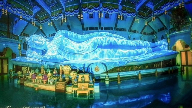 泰国最梦幻浪漫的寺庙!寺庙位于深山密林之中,环境幽谧,远离喧嚣,寺庙建筑精美绝伦而充满神秘。该寺的大殿内供奉着一尊长20米的白色大理石卧佛,大理石从意大利进口,大理石卧佛在灯光的映照下更加绚丽迷人。整个寺庙如宫殿一般,不仅让人感觉梦幻神奇还有有一种特别的浪漫味道!从寺庙环视四周满眼尽是美丽风景,您在这里可以看到日升、日落,寺庙的晚上风景更是美丽,如果您喜欢安静和心旷神怡必要错过这里。