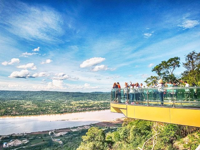 寺庙坐落在海拔500米的山上,沿途会经过数个观景台,比庙宇本身更吸引人的是在寺庙高处的U型玻璃栈桥,是泰国第一处玻璃观景台,两边没有任何阻挡,视野十分开阔,在这里可以欣赏到泰国-老挝之间湄公河上空的美丽云海。