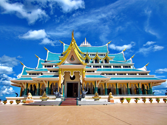 佛寺位于水池的中央,整个寺庙区域占地48562平方米,是近几年泰国佛寺建筑的精品,被誉为呵叻府最精美的寺庙之一。寺庙的建设融入了佛教印度教的多种文化,整个寺庙造价到达了1亿泰铢。寺庙的彩色装饰面由超过20万个马赛克拼贴而成,每逢夕阳西下,阳光下的寺庙闪耀着五彩斑斓的色彩,异常美丽。