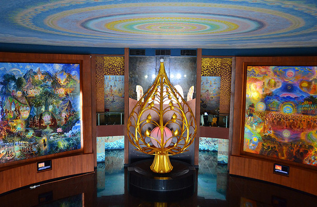 寺庙位于碧绿苍翠的田野中央,寺庙结合了泰中的建筑风格,供奉着一尊高达十几米的大金佛。这尊佛像以祈祷的姿势坐着,慈眼视众生。佛像以黄金镶嵌,周围被形态各异的建筑结构保护着。寺里还有一座高69米、宽29米的九层宝塔。游客可以走路或者乘电梯上宝塔的最高层欣赏泻湖和水坝的风景,站在宝塔顶层,寺庙周围的田野风光一览无遗。