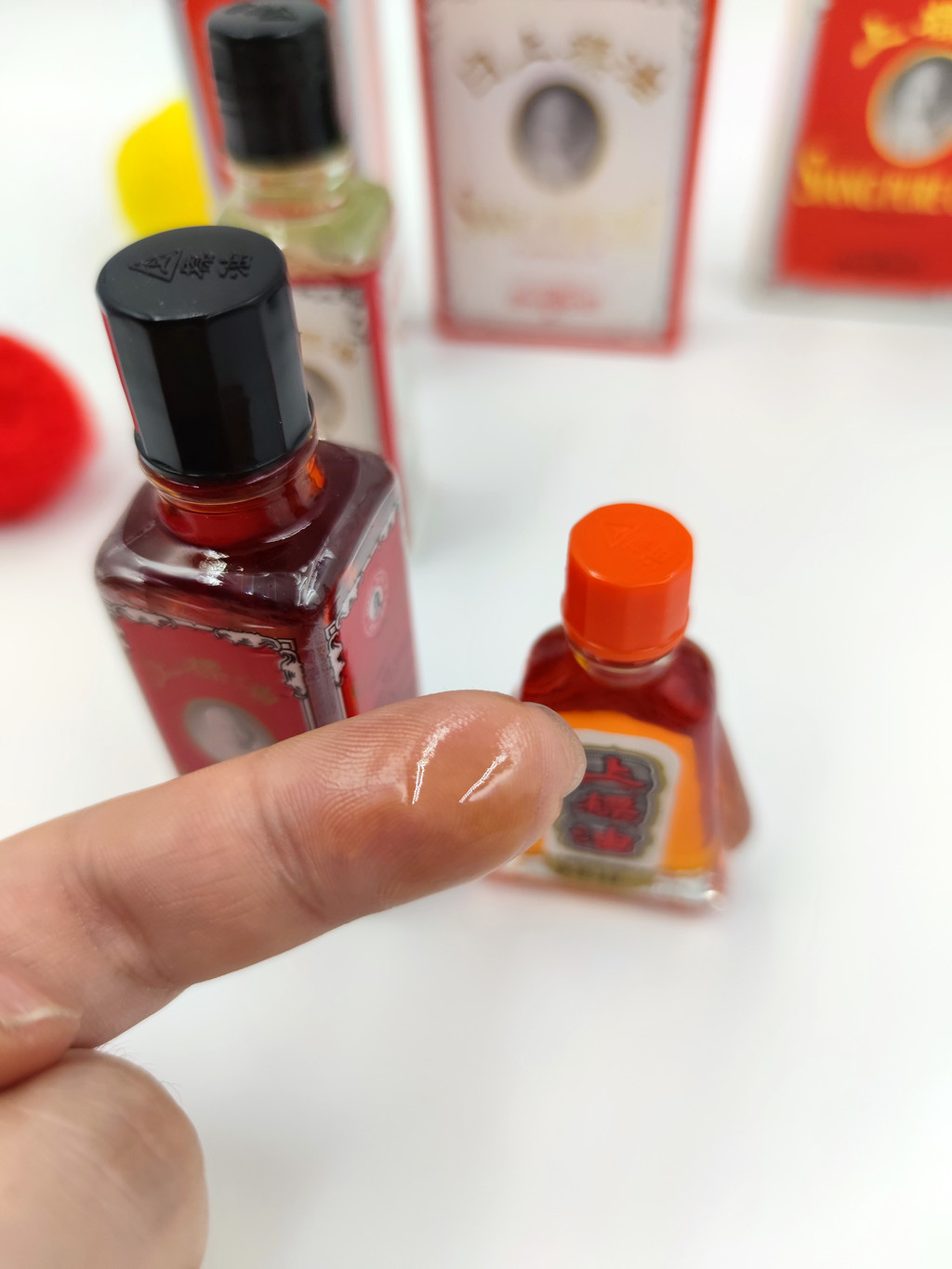 第一种,原始配方琥珀色上标油,琥珀色(黄色)液体。气味浓郁,带有肉桂油、丁香油和薄荷的草本香气,可促进血液循环。如果涂在皮肤上,会有点灼热感,闻过之后,会令人清凉舒爽。