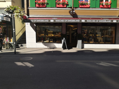 先到了瑞士的钟表等购物一条街,这里全是买表和纪念品的,瑞士军刀啥的比国内便宜不少。