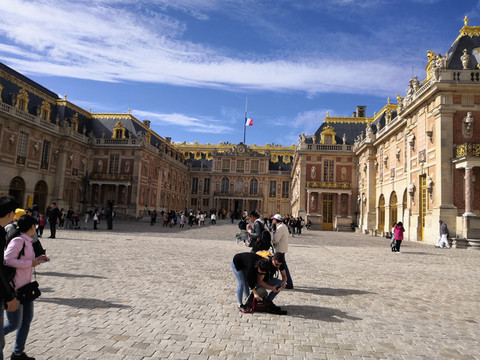 凡尔赛宫是法国封建时期帝王的行宫,始建于十六世纪,后经扩建形成现在的规模。凡尔赛宫外观宏伟,内部陈设更富于艺术魅力,处处金碧辉煌,豪华非凡。它是巴黎的象征,随着维克多雨果的小说使它名扬海外,拿破仑曾经于此加冕为皇帝。小的时候看过漫画《凡尔赛的玫瑰》,所以对这里很感兴趣,从外面看很有气势