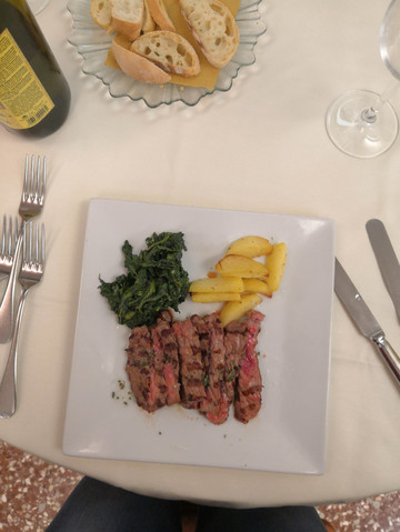 牛排带着一点血丝,这个在中国我是不怎么敢吃的,不过,既然说这里都这样,怎么也要试试,实际证明,确实味道不错,就算我这肠胃不好的,晚上吃了也没有任何不适,确实货真价实。作为吃货,我决定,在欧洲旅行期间,怎么也要再吃一次。其实真正算算,加上汇率,在国内吃这样的牛排也不算贵。