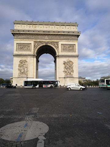 凯旋门正中间马路上,有一个专门的地方拍照,很多人都不知道,我们也是偶尔发现的,觉得怎么有人这么大胆,在车流中拍照,后来发现,那里就是个拍照点,等我们过去拍完照,后面就开始排队了。