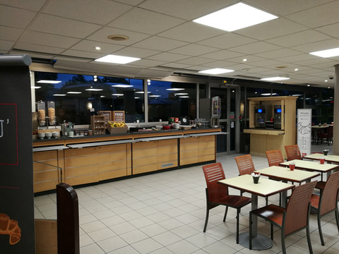 第二天的午餐是自理的,我们在服务区解决。服务区的人挺多的,法国的这个服务区,菜单都是法文,服务员说的也是法文,完全不知道点啥,最后准备点个地道的法国披萨和意大利面,导游帮我们点了餐,给点了个中国人比较能吃的了得口味。说句实话,真难吃,味道就是从国外买的那种意大利酱的味道,我在家买了酱做饭的时候,还以为是我自己不会做饭,实际上,是真正的口味不合啊。看来国内的意大利面是经过中国自己改良的,差别太大了。