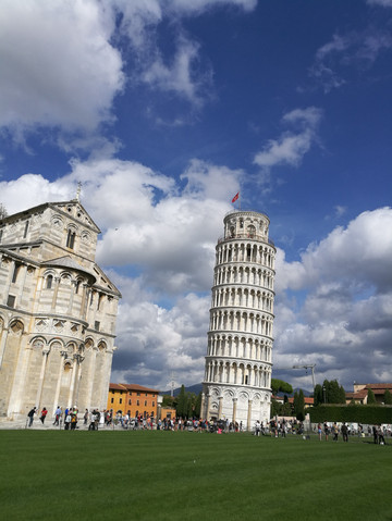乘车前往比萨, 游览比萨斜塔(外观约20分钟)。比萨斜塔位于意大利托斯卡纳省比萨城北面的奇迹广场上,比萨斜塔是比萨城的标志,1987年它和相邻的大教堂、洗礼堂、墓园一起因其对11世纪至14世纪意大利建筑艺术的巨大影响,而被联合国教育科学文化组织评选为世界遗产。