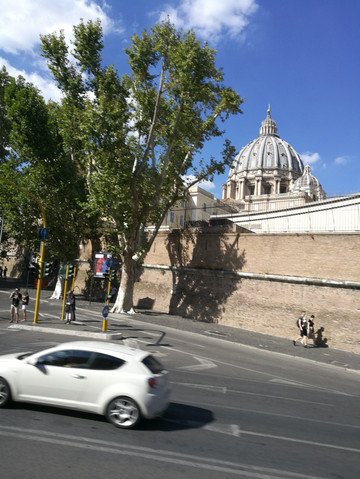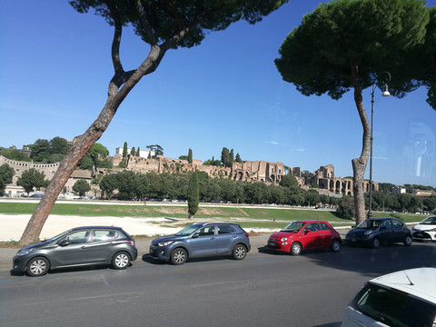 这天的行程是到罗马,今天是所以行程中最受罪的一天,因为基本上所有的行程都是在路上,除了最后在经典的市中心,也就是罗马斗兽场,尤其是在罗马市中心,路堵,全是上下坡,简直太要命了。顺便说句,著名的宗教国家梵蒂冈就在罗马市,里面有著名的圣彼得大教堂,不过我们行程中没有,本来导游想组织一下超出团里的深度游的,但是因为团里的大妈大爷们太多,没成,后来我也不积极了,晕车太难受了,到晚饭的时候加上那饭菜做的贼难吃(行程里第二难吃),我直接自己买了瓶饮料将就了一下,再多坐会车,我就真能吐了。