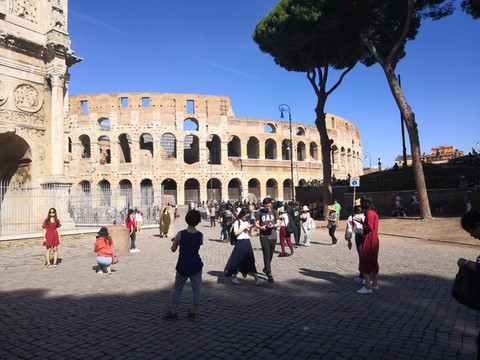 周边都是遗迹,到处都是人。斗兽场位于市中心,是古罗马时期最大的圆形角斗场,威严而壮观;旁边是公元315年修建的君士坦丁凯旋门
