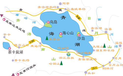 青海湖景区到底在哪里呢?2015年颁布的《青海湖景区管理条例》规定,青海湖景区从湖岸线起,东至环湖东路以外50米,西至环湖西路以外50米,南至109国道以外100米,北至青藏铁路100米范围内。下面地图里挂了景区牌的是收费景点,人最多的是南岸的二郎剑景区,个人不推荐去买它100元的门票。