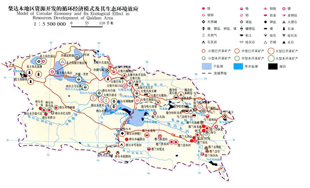 柴达木气候非常干旱,年降水量只有100毫米,相对湿度30%,而年日照长达3000小时以上,它所蕴藏的风能(你一进盆地就可以看到无数风力发电机组)、光能(牧民多用太阳能作为替补电能)非常丰富。除了我们已经知道的盐矿,柴达木还富含煤炭、锂、锶、石棉、石灰岩等矿藏,所以称之为“聚宝盆”。