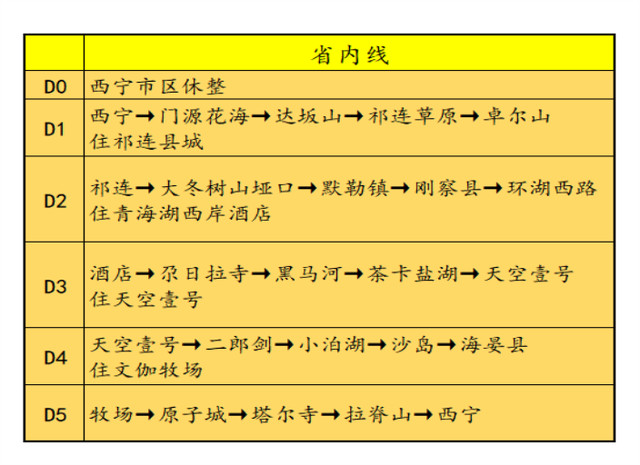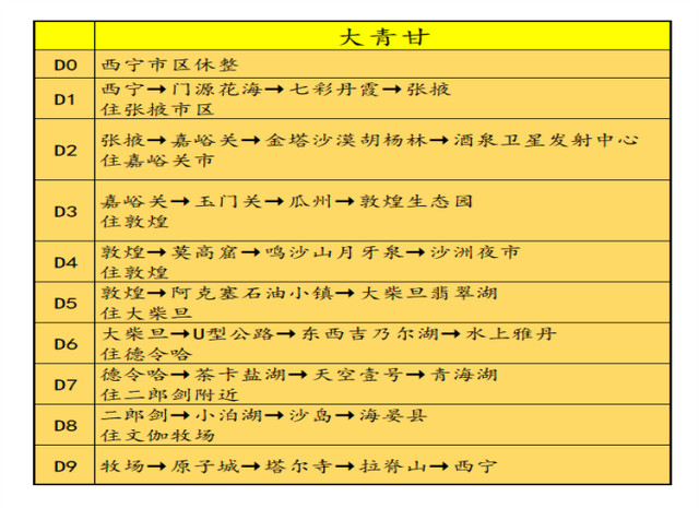 第二个,先到西宁适应1-2天再动身,如果从兰州出发也是,下面是我统计的大青甘环线沿途各地的海拔表。