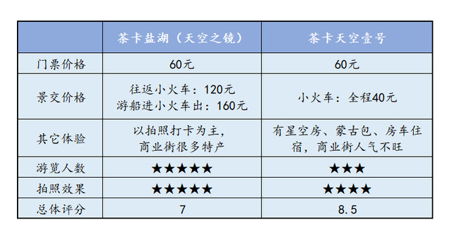 茶卡盐湖它是一个地名,而不只有一个景区,位于茶卡盐湖的景区有2家且都是4A,老一点这家就叫茶卡盐湖(天空之境),就是上面图片这家。新的这家(2019年开业,浙商投资)叫茶卡天空壹号,两家景区都位于湖边,相隔10公里(开车很近)。我这次把两个景区都仔细走了一圈,对比着给大家一些建议。