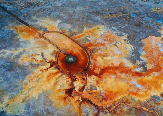 人称“恶魔之眼”的“艾肯泉”,位于海西茫崖市莫合尔布鲁克村。当地语言中“艾肯”寓意着不吉祥,在艾肯泉周围没有一丝生气,没有植物也没有动物,荒凉的死气给人们带来的就是一种衰败、死亡之感。从空中俯瞰,泉眼与喷涌而出的泉水组成了“大地瞳孔”的造型。