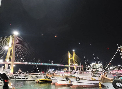 白天来突山公园你可以看到时不时经过的大轮船,在宽阔的海面上划出一大段波浪。比起白天,我更喜欢晚上来。晚上的突山大桥,加上灯光渔火的点缀,是不是简直就“帅呆了”!