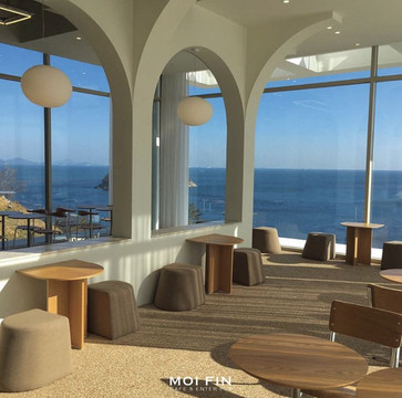 这是一家咖啡厅,对于韩国的精品咖啡厅向来是没有任何抵抗力的。所以这家整体风格非常简约、大气,白色的格调跟丽水的蓝天和大海非常贴合,真的一定要推荐给大家。
