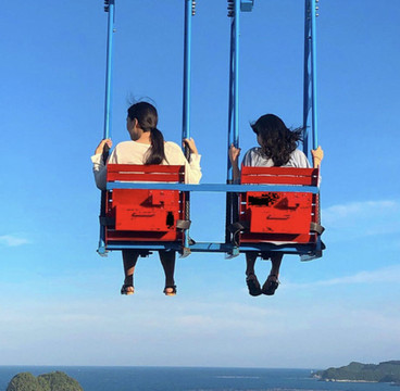 高空的秋千是机器运作的,整场体验大约三分钟。乍一听很多朋友肯定不以为然,但是坐过的人都觉得比想象中的要恐怖,不信,下次自己来体验一番呀。