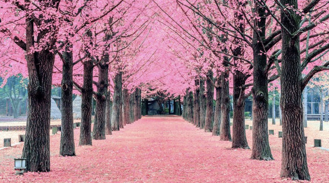 南怡岛一年四季景色迷人,而且每个季节主打的色调都不一样,春天的粉,冬天的白等等。但是最推荐的还是南怡岛秋天的金黄和火红。
