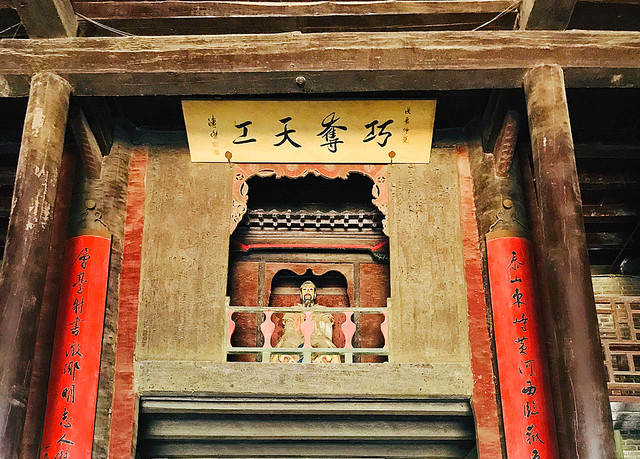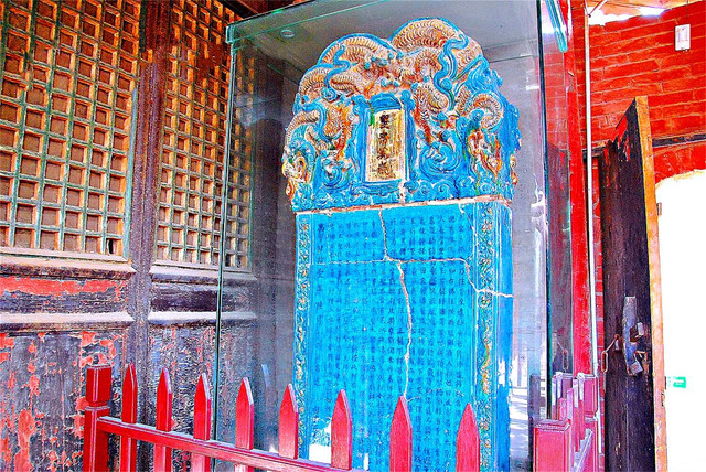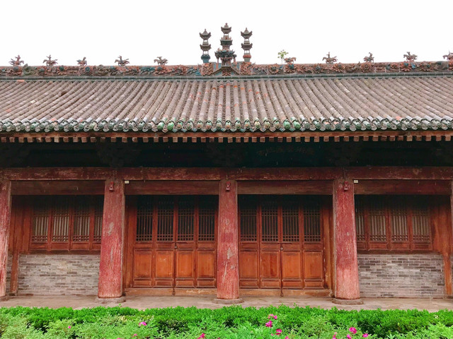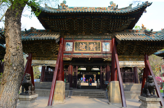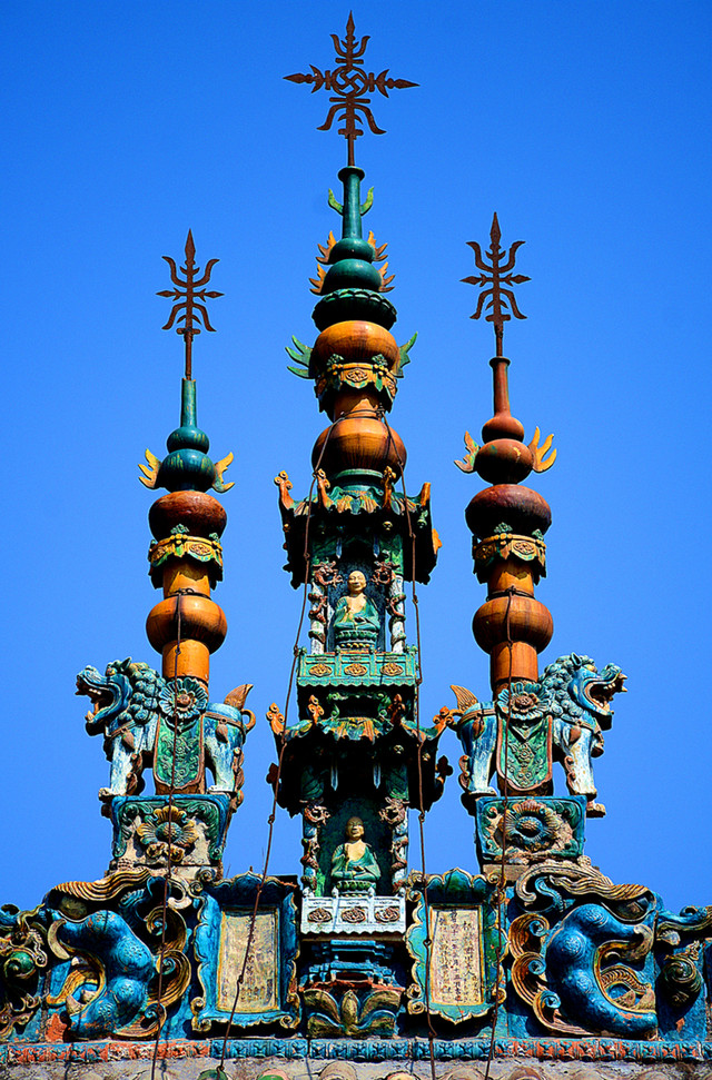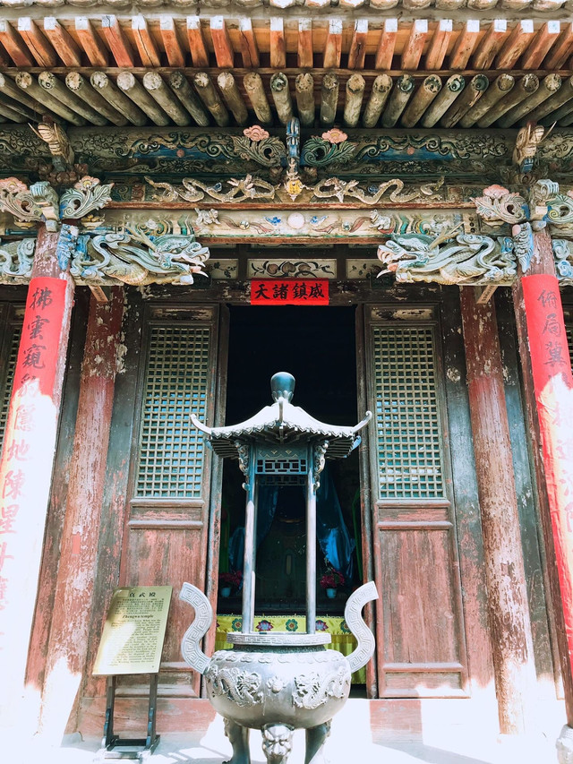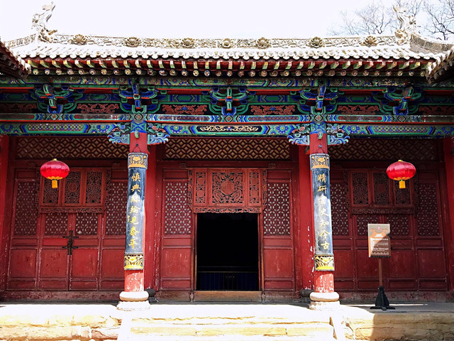 建于明万历年间的空王佛祠靠近张壁古堡北门,殿顶的三彩琉璃装饰美轮美奂,殿内的孔雀蓝琉璃碑国内罕见。