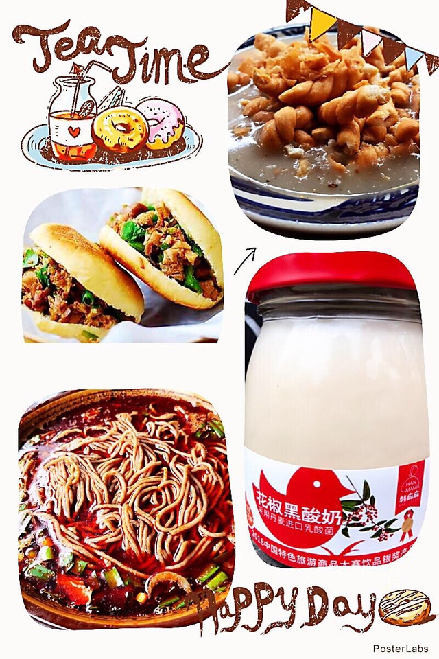 这是抵达 韩城 老城之后迫不及待去的地方~~古城美食街。雨后的街巷只有少量游客,我们一路逛着吃着只嫌胃口小了:“羊肉饸饹”于我略显油腻;“肉夹馍”中规中距;“油茶配小麻花”比较新奇;最推荐“花椒黑酸奶”,浓郁的花椒香回味悠长、至今难忘。