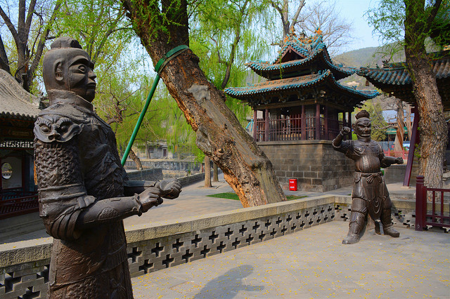 晋祠之美,美在金人台。史料记载,北宋元祐初年,晋水泛滥成灾,于是意预以金神镇之。元祐四年至绍圣五年,四尊铁人铸齐,神态各异、威风凛凛,铸造工艺之精美复杂,令人叹为观止。《晋祠志》所云:“铁本是金,熔铁铸人,名曰金神”。