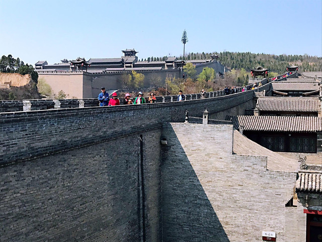 王家大院的堡墙有三丈余高,竟与北京故宫的城墙相差无几!来至城墙之上,平时可以游玩、赏景,有人攻城时又是防御工事。