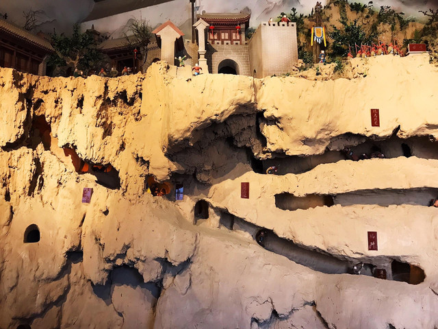 张壁古堡的地道入口在古堡之内,出口则在丛山峻岭之中,上下一共三层。只见地道迂回曲折、扑簌迷离,通风口、陷井、水井、藏兵洞、妇孺区、俘虏室、指挥室、马厩、粮仓等设施一应俱全,难怪被世人誉为世界建筑史上罕见的一座地下城池。