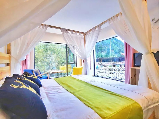 麓寨观景民宿离核心景区月亮湖只有五公里,可以直接前往月亮湖,如果需要去大莲花湖,可以从月亮湖徒步前往,坐当地居民的摩托车(汽车无法直接前往大莲花湖)