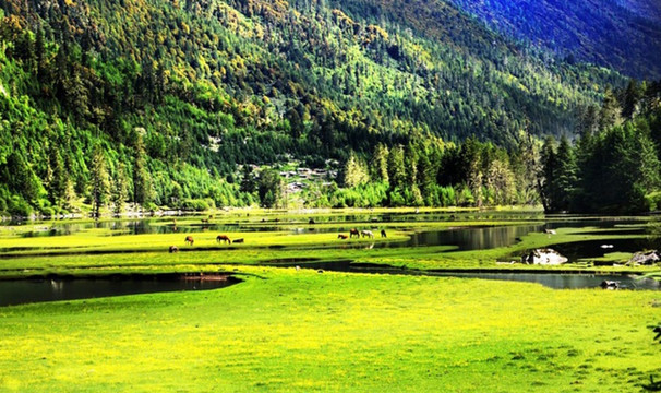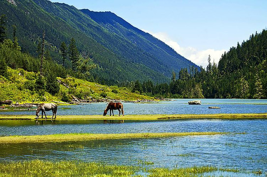 莲花湖景区内可以选择徒步,从沟口徒步需3-4小时可到达温泉,温泉到莲花湖需30多分钟,加之春夏之时,海子四周鲜花盛开,满谷幽香,疑为仙境。