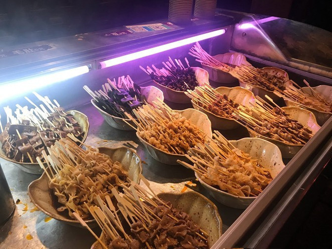 锦里商铺的名字都取得特别文艺,一不留神还容易给人一种穿越到过去的感觉。路边商铺里还有很多的麻辣串,爱吃辣的游客也是有口福了。
