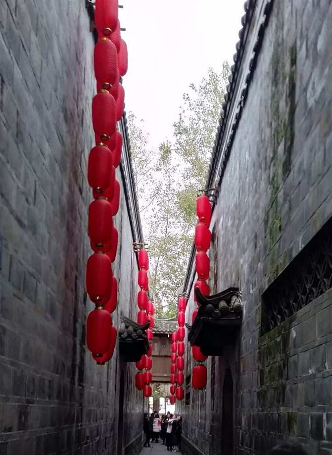 锦里 锦里锦里古街靠近武侯祠,它不宽不窄,表面上看起来就和普通小巷没有多大的区别,但是走进去才发现其实很不一样。大门口挂了红红的灯笼,里面也不例外,一路走过去全是长竖型的灯笼,一串一串的,仿佛有一种古代逛市集的既视感。