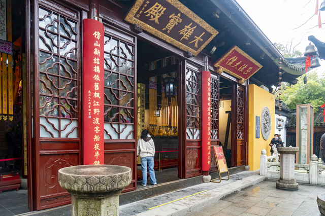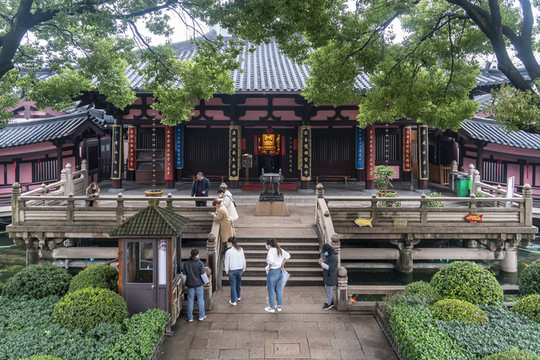 寒山寺的布局很特殊,它不是坐北朝南,也不是坐西朝东,而是坐东朝西。它寺门外就是古运河,大概这是它门朝西的缘故,便于船客登岸即可入寺,上三柱高香,求一路平安。镇江金山寺也是门朝西开,它那是依山就势。
