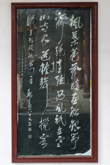 寒山寺有文化内涵,历代名人为其题诗无数,寺里就要不断收集这些诗词歌赋。收集起来不能隐藏在暗处,一定要刻石贴于墙上,因此寺中诗词刻石就随处可见,更有碑廊集中展示。