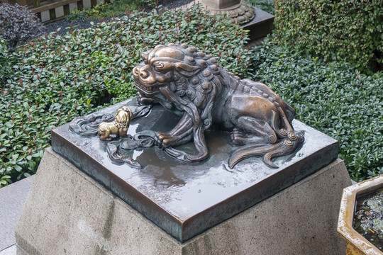 台基上四角还各有一只青铜狮子。
