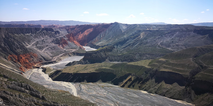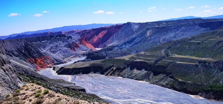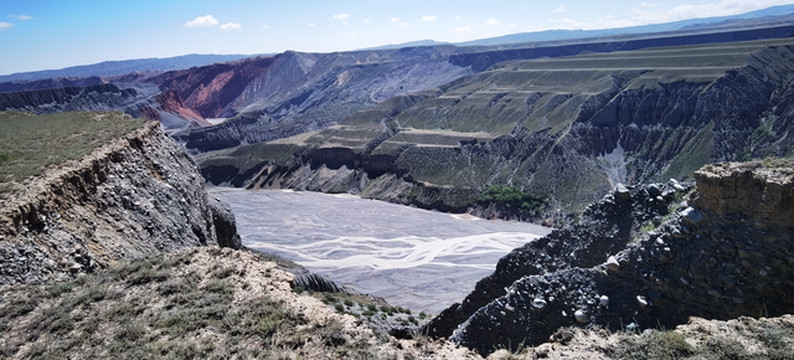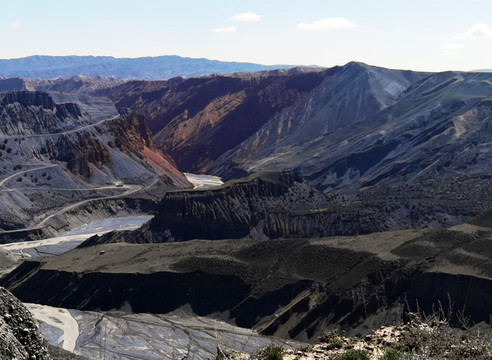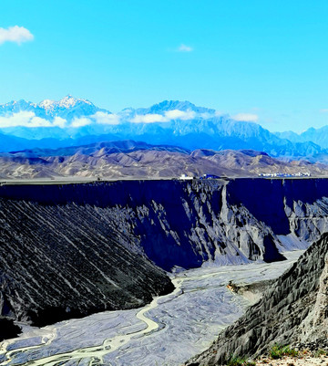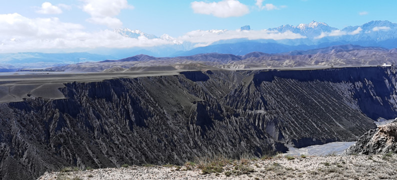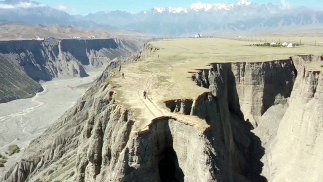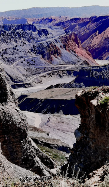 离乌苏市不远有一个非常小众的景点“安集海大峡谷”,在百度地图上导航就能找到。这也是我们此行的最后一个项目。这个地方在《中国国家地理》曾有过报道。与其说这里是峡谷,不如说是安集海河在大地上经过千万年的冲刷形成的一道大地裂缝或者叫裂谷。因为这里的而特殊的地质情况,全都是松软的砂石土质结构,在地表层下面不深的处还有煤层。建设兵团7师在不远的地方露天开采煤矿。安集海河上游为巴间沟,发源于依连哈比尕山主峰,在通古特附近冲出天山,如脱僵野马一泻千里,在天山北坡冲出了规模宏大的冲击扇。河水在元兴宫以北约七公里的平原丘陵地带,切出万丈悬崖绝谷,形成了世界少见的地貌。由于地下含有多种矿物质,断层呈现多种颜色,有红山、黛崖、青峰、绿岛、碧水等丰富色彩,就像一条彩带飞舞在天山北坡脚下。有人说这里就像一副毕加索的抽象派画面。但在不同的时刻,不同的季节人们看到的画面是不一样的。就像一千个人心中有一千个哈莫雷特一样,一千个人眼里就有一千个安集海大地裂谷。千万年的冲刷,地裂岩壁顶到谷底有几百米高,站在谷顶下望小腿肚子还真有点发软。前两年有不知死活的人把车开到的崖壁边缘,结果连车带人栽到了谷底。为了安全起见现在在公路边上拉上了铁丝网和铁栅栏防止游人靠近,但是百密一疏总有能跨进去的地方。远处的天山雪山、一望无际的草原大地,眼前的大地裂谷构成了一副绝美的画卷。我们在这里游览了大约有两个小时,望着千亩草地上一棵孤独的树恋恋不舍地离去。
