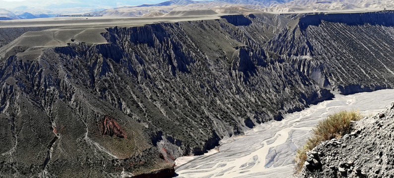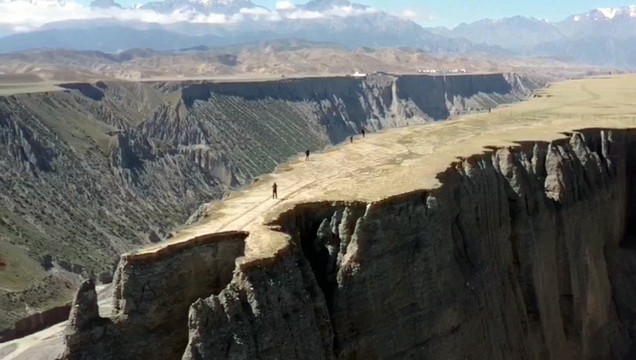 距离这里大约50公里的地方也有一个形貌像类似的地裂谷名叫“独山子大峡谷”。那个地方是由天山下来的奎屯河冲刷出来的。那个地裂峡谷现已商业旅游开发完毕,在崖壁上建了高空秋千,两岸之间建了玻璃桥。安全有了保障,但味道全变了。这安集海大峡谷不是一个地方呦。