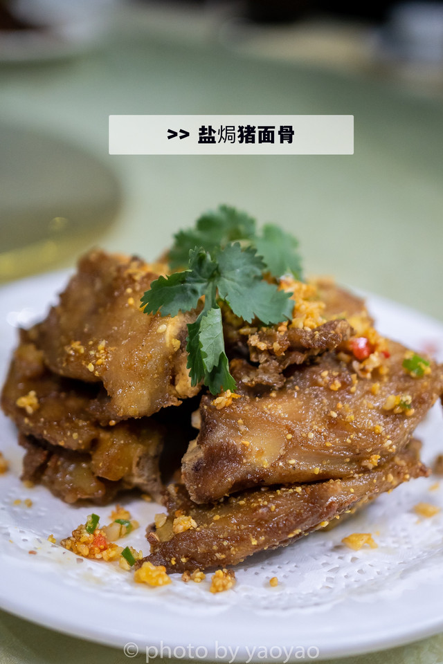 ?盐焗猪面骨:“猪面骨”其实就是猪前脸上的那块骨头。用盐焗的方法,不但入味而且保持了骨上那肉的嫩,非常好吃?这菜挺多老广喜欢点的。
