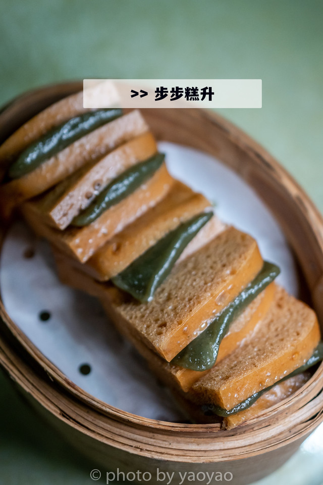 ?步步糕升:寓意非常好的一道甜品。这个“糕”就是伦教糕。金黄的伦教糕两片中夹个艾糍粑,松软中带点艾糍粑的韧劲,味道甜爽而不腻,点一份当早餐或下午茶是最适合。