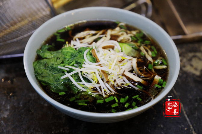 宴春酒楼的锅盖面是细圆的,非常的精斗,久煮不糊,所以面里的汤色十分的清靓。雪菜肉丝面15元,水晶肴肉面18元,我们还是把肴肉分开来点了。