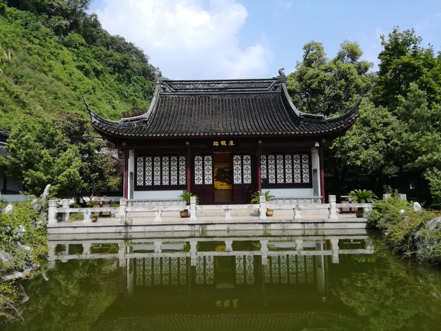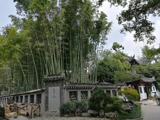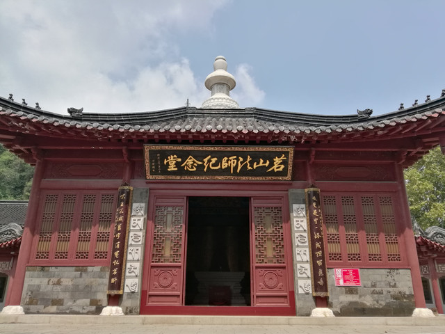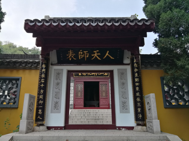 我们从定慧寺出来,走向乾隆行宫,在路边有一别致的古建筑“茗山法师纪念堂”。茗山生于1914年2月20日,盐城人,19岁出家,次年在定慧寺受具足戒。1951年秋任定慧寺住持,1993年起任中国佛教协会副会长。2001年6月1日随缘示寂,世寿88岁。茗山既是一代高僧,佛教学者,又是诗人,书法家。他佛学造诣高深,通晓经、律、论三藏,精通诗文、书法,多次赴世界各地讲经、弘法、放戒,在海内外享有盛名。他一生著书甚多,写诗四百余首,书法作品被世人视为珍品收藏。